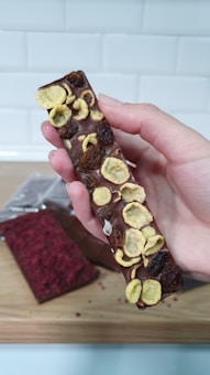 Barra de avena con cacao y coco, perfecta para disfrutar en cualquier momento del día.